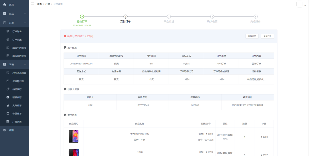 再次访问首页->订单->订单详情页面,现在这个页面的手机号码就不再是明文显示,而是加密之后的状态。